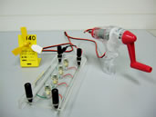 1)「電気のはなし」をテキスト・模型・グッズを使って学習します