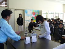 4〜5人のグループに分かれて「霧箱」を作り、放射線を目で見る体験学習をします。
